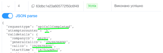 В даному випадку companyID / generalCallID / callID / startTime - є вкладенними даними у масив calldetails. Щоб їх внести у співставлення полів або у фільтр потрібно їх відповідно прописувати так:calldetails.companyIDcalldetails.generalCallIDcalldetails.callIDcalldetails.startTime - Правила, які можна примінити до цього параметру. Вони розшифровуються таким чином: